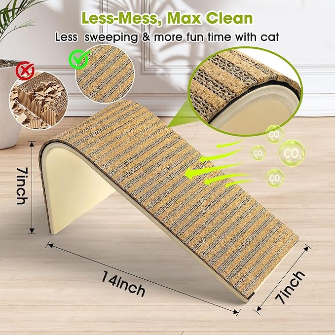 ​Virtually Mess-Free: A Safer, Cleaner Home for You & Your Cat Tired of sweeping up messy cardboard shreds? Our high-density cat scratching board is designed for minimal debris. This means a cleaner home for you and a safer experience for your cat, drastically reducing the risk of accidental ingestion from traditional cardboard scraps.