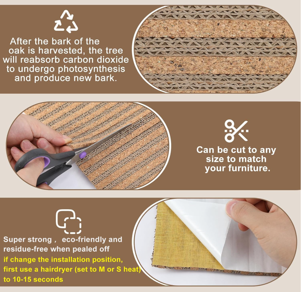 - 【Good for Your Cat, Great for the Planet!】–The cat couch protector made from cork harvested from sustainable oak trees, 100% natural renewable material—because we love Earth as much as you love your cat! These trees are busy absorbing CO₂, helping fight climate change one scratch at a time——Feel good while your cat goes wild!